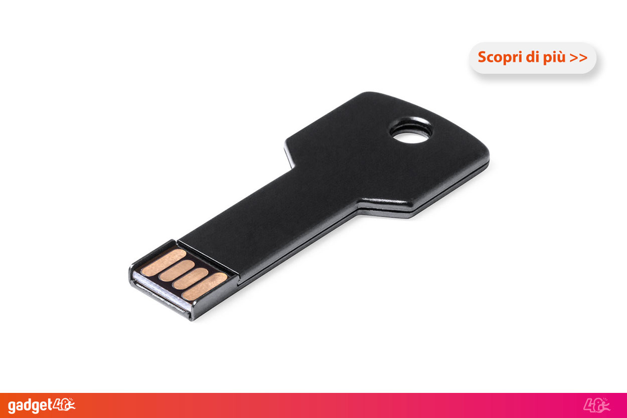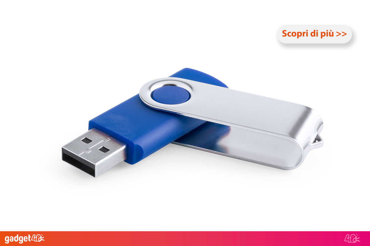 Una chiavetta USB personalizzata è il perfetto regalo promozionale per le attività ed un amato regalo aziendale per dipendenti e collaboratori. Le memorie USB personalizzabili con il vostro logo, slogan o immagine, sono infatti dei must have tra gadget aziendali tecnologici e la cosa sorprendente è che sono anche tra i gadget personalizzati economici più accessibili, infatti ne nesistono un'infinita varietà tra cui modelli a poco prezzo ma sempre smart e funzionali. Le chiavette usb personalizzate non sono solamente un regalo perfetto per eventi, fiere e manifestazioni, ma anche come gadget di ringraziamento per un cliente, un cadeau personalizzato da inserire in una gift box per dei partecipanti ad un corso, o ancora un ottimo dispositivo per inviare le foto di matrimoni ed eventi ai propri invitati. Insomma, personalizzare chiavette usb da regalare sarà sempre una mossa vincente. Le pennette personalizzate spesso rappresentano inoltre uno strumento di scambio di informazioni tra persone: quante volte ci hanno detto "mi metti quei dati su una chiavetta usb" ed ecco che il tuo logo aziendale passerà di mano in mano attivando quei centri cerebrali infallibili che fanno scaturire curiosità e familiarità per quel logo e quel nome stampati sul gadget. Proprio per questi motivi le pen drive personalizzabili sono ottimi strumenti promozionali per qualunque target ma a seconda del tuo scopo e del tuo buyer personas avrai la possibilità di scegliere tra diverse tipologie.