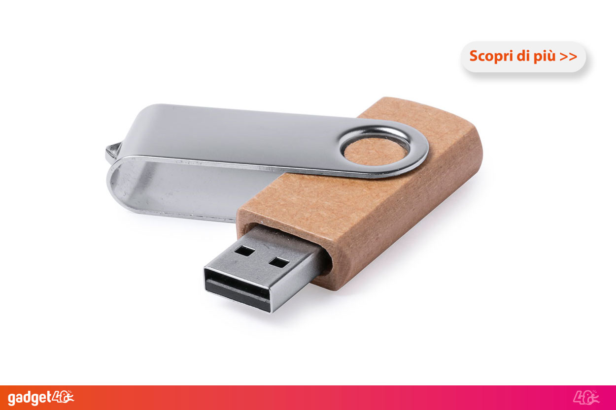 Fai parte di un'azienda green impegnata per un futuro sostenibile? Vuoi trasmettere un messaggio di attenzione e aggiornamento a potenziali clienti? Allora potrai optare per nostri dispositivi di memoria chievette usb ecologiche. I nuovi materiali a disposizione come fibra di grano, bambù e legno, permetteranno di fornire un gadget tecnologico e sostenibile allo stesso tempo garantendoti stampe di qualità e durature.